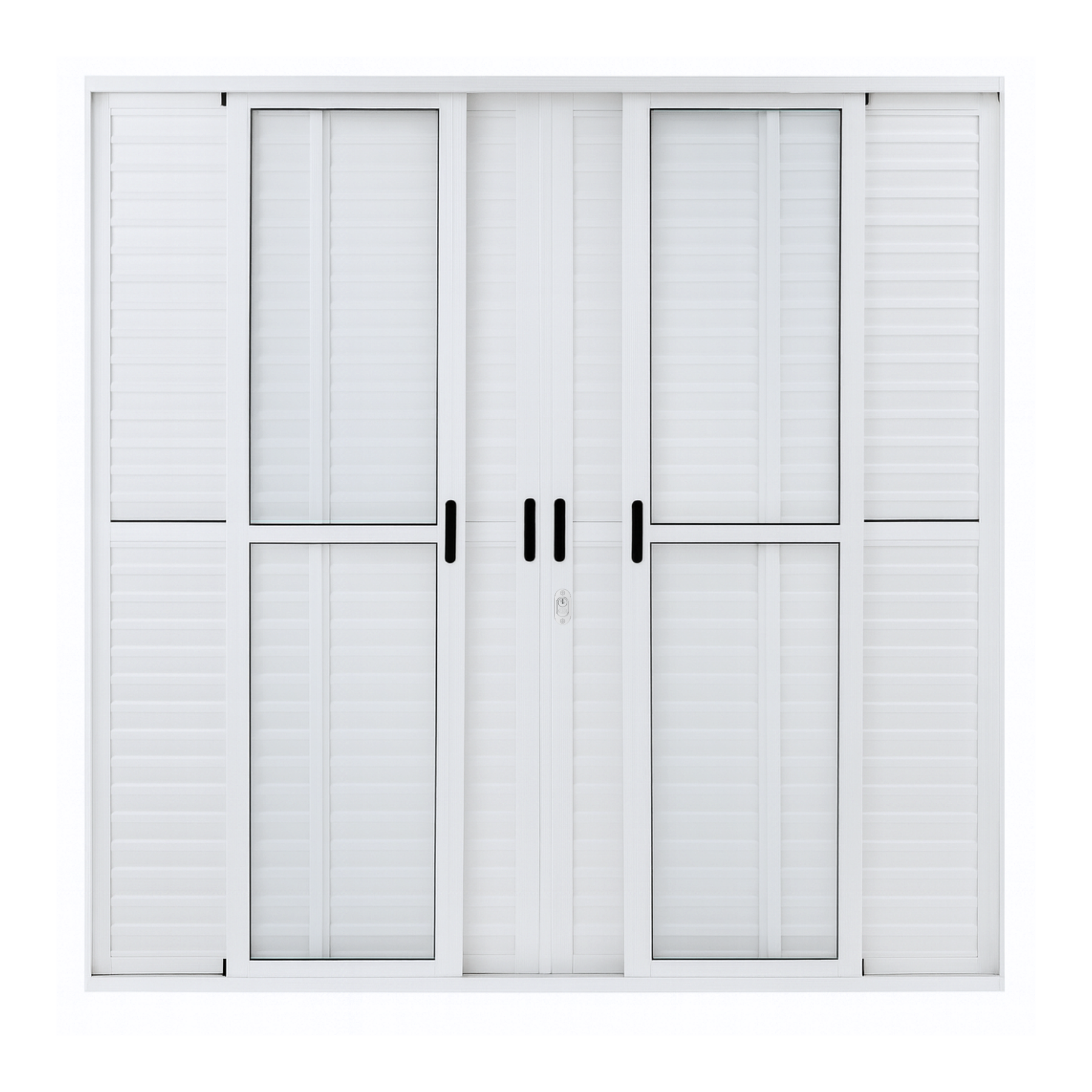 A Porta de Correr de Alumínio 6 Folhas da Linha Premium une alumínio e vidro em um equilíbrio que você sente no olhar. Suas 4 folhas de alumínio trazem a firmeza e a segurança que o dia a dia exige, enquanto as 2 folhas de vidro abrem o caminho para a luz atravessar e tocar o ambiente com suavidade.