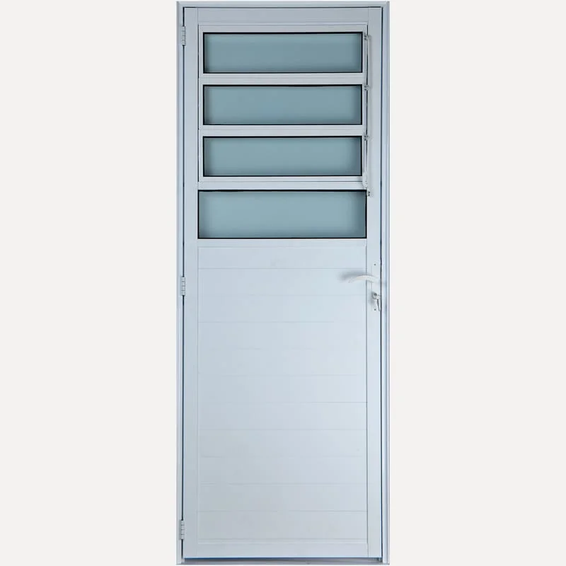 O sistema basculante garante ventilação contínua — os básculos permitem que o ar circule 24 horas por dia, mantendo o ambiente sempre renovado, mesmo quando a porta está fechada. O acabamento em lambril traz elegância e resistência, reforçando o estilo contemporâneo da peça.
