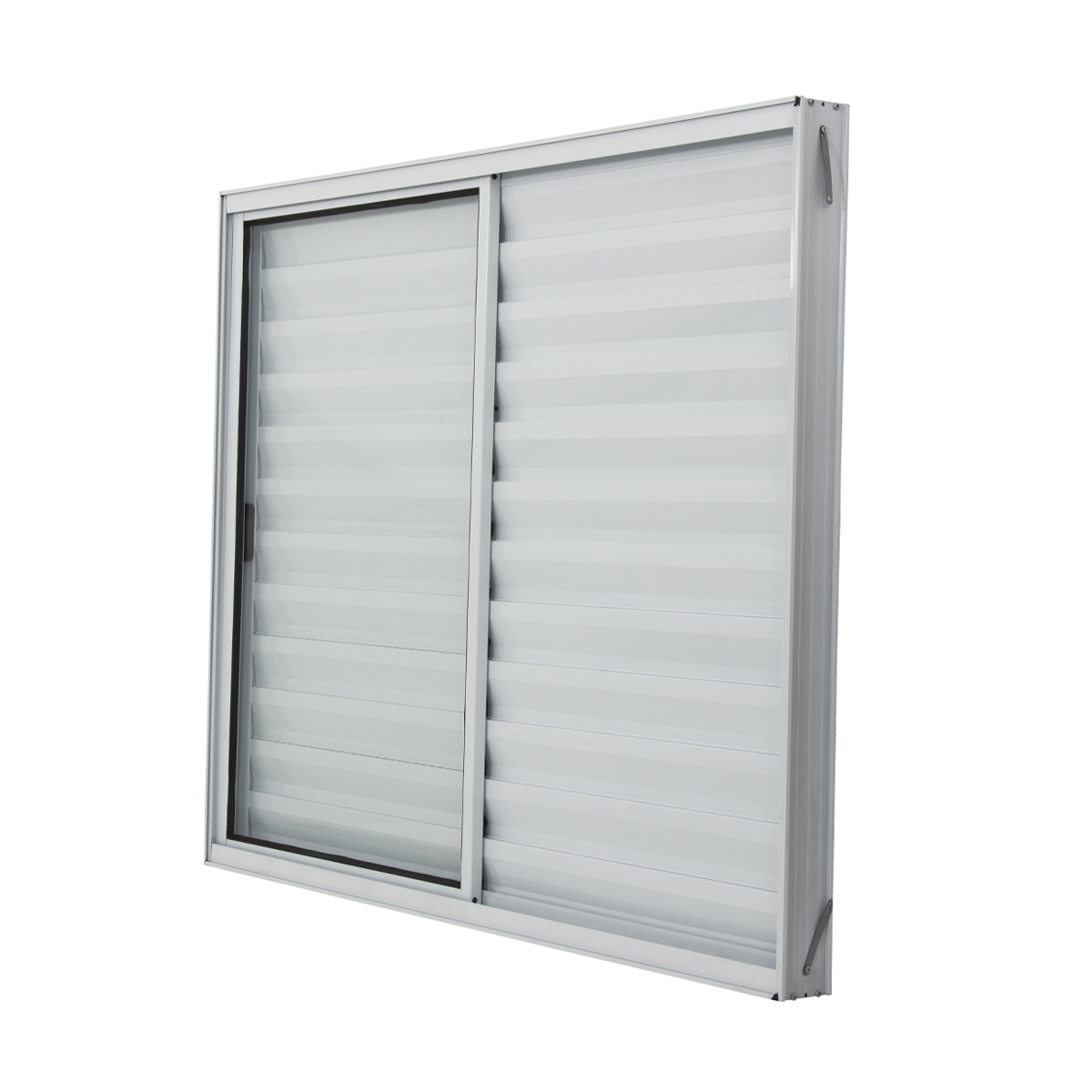 A folha fixa oferece a privacidade necessária, enquanto as folhas móveis permitem controlar a entrada de luz e ventilação conforme a sua necessidade — mais frescor, mais luz ou mais sossego, tudo ao seu alcance.